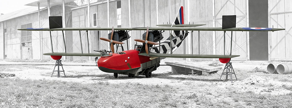 The Felixstowe F.2a was probably the most successful flying boat of the First World War. With a crew of 5, it was capable of carrying out long-range reconnaissance, anti-submarine, and anti-shipping patrols of up to 10 hours duration. The development of the Felixstowe F.2a is staggeringly convoluted. Still, it was essentially an Anglo-American design that can trace its roots to the pre-war Glenn Curtiss & Cyril Porte designed 180hp twin engine ‘America’ flying boat design. This basic design was improved, enlarged, strengthened, and repowered successively by both Curtiss and Porte (having now returned to service in the RNAS after the outbreak of war despite suffering from Tuberculosis) over the next few years until July 1917, when Porte arrived at the characteristic deep ‘V’ hull with full side fins. Although technically now a wholly Porte design, these Felixstowe flying boats, so named because they were developed at the RNAS Seaplane Experimental Station at Felixstowe in Suffolk, were referred to as ‘Large Americas’ by the British and as ‘Curtiss’ types by the Germans.
