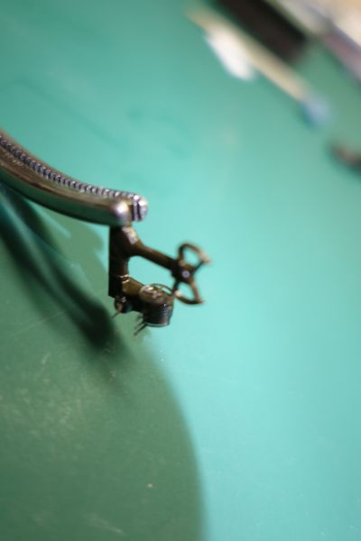 Now adding the primer coat using a Tamiya rattle can of fine surface primer. Then I sand the finish with fine grit paper ending with .5 micron paper using K & S Sanding Film.