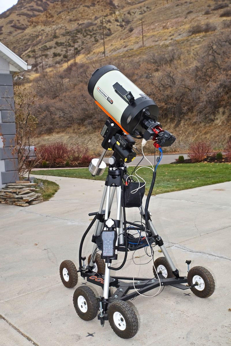 Now I've attached the Celestron 11 inch telescope, the focal reducer, the Moonlite focuser and the Canon 60Da camera.